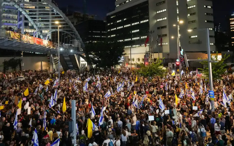 গাজা-ইসরায়েল যুদ্ধে যুদ্ধবিরতি ঘোষণার মাধ্যমে পণবন্দীদের মুক্তির ব্যবস্থা করার দাবিতে তৃতীয় দিনের মতো বিক্ষোভ করছে সাধারণ মানুষ।