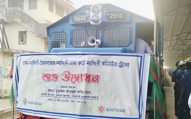 নরসিংদী কমিউটার ট্রেন সকাল ৬টা ৪৫ মিনিটে ভৈরব বাজার জংশন থেকে ঢাকা অভিমুখে যাত্রা শুরু করে নরসিংদী কমিউটার ট্রেন। পরবর্তীতে সকাল সাড়ে ৯ টায় কমলাপুর রেলস্টেশনে রেলপথ উপদেষ্টা মুহাম্মদ ফাওজুল কবির খান নরসিংদী কমিউটার ট্রেনের যাত্রীদের ফুল দিয়ে বরণ করে দিবেন।