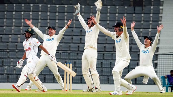 বুধবার সিলেটে চারদিনের টেস্টের প্রথম দিনে টসে হেরে আগে ব্যাটে নামে নিউজিল্যান্ড। প্রথম ইনিংসে ৭৫.২ ওভার ব্যাট করে ২৫৬ রান করে তারা। জবাবে নেমে বাংলাদেশ ১২ রানের লিড নিয়ে ৬৯.৩ ওভার ব্যাট করে ২৬৮ রানে থামে। দ্বিতীয় ইনিংসে নেমে ৮০.১ ওভারে ২৫৭ রান তোলে সফরকারী দল। ২৫৬ রানের লক্ষ্যে নেমে দ্বিতীয় ইনিংসে বাংলাদেশ থামে ১৭৫ রানে।