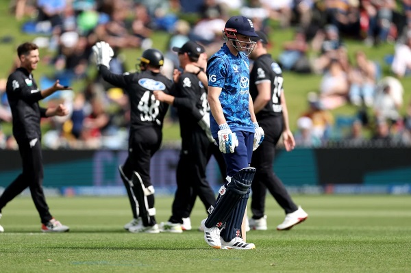 হ্যামিল্টনে বুধবার তিন ম্যাচ ওয়ানডে সিরিজের দ্বিতীয়টিতে টস হেরে আগে ব্যাটে নামে ইংল্যান্ড। ৩৬ ওভারে সবগুলো উইকেট হারিয়ে ১৭৫ রানের সংগ্রহ দাঁড় করায় হ্যারি ব্রুকের দল। লক্ষ্যে নেমে ৩৩.১ ওভারে ৫ উইকেট ও ১০১ বল হাতে রেখে জয়ের বন্দরে নোঙর করে নিউজিল্যান্ড। স্বাগতিকরা তুলে নেয় ৫ উইকেটের বড় জয়।