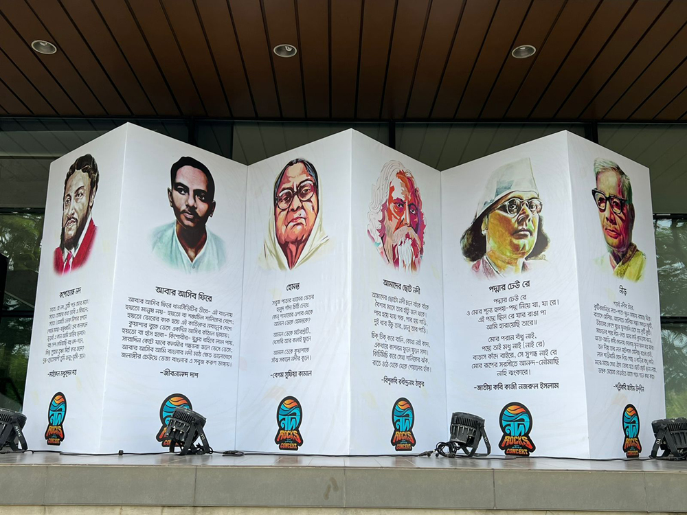 ‘দেশের সব নদী নিয়ে একটি করে গান থাকবে’ এমন স্বপ্ন নিয়ে এবং জলবায়ু ও নদী রক্ষায় সচেতনতা সৃষ্টির লক্ষ্যে শুরু হয় ‘নদী রক্স’ উদ্যোগটির পথচলা। কনসার্টের ভ্যানুটিও স্মরণ করিয়ে দিল নদী নিয়ে বাঙালির আবেগ। ভ্যানু সাজানো হয় নদী নিয়ে বিখ্যাত সব কবিতা ও গানের পংক্তিমালা দিয়ে।