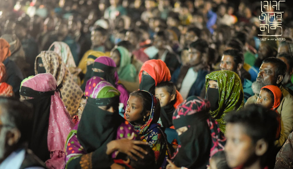 নির্মাতা সূত্রে জানা যায়, সোমবার গঙ্গামতীর চর এবং জেলেপল্লী কুয়াকাটা পিকনিক স্পট-এ দুটি প্রদর্শন হয় ‘নোনা জলের কাব্য’র। নিজেদের গল্প নিয়ে তৈরি এই ছবি দেখতে উপস্থিত হয়েছিলেন জেলে পরিবারের ১২০০ সদস্য।