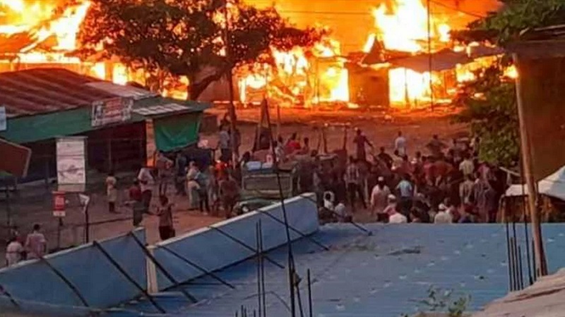 খাগড়াছড়ি সদরে চুরির অভিযোগে মো. মামুন (৩০) নামের এক যুবককে পিটিয়ে হত্যার ঘটনায় বিক্ষোভ চলাকালে পাহাড়ি ও বাঙালিদের মাঝে ধাওয়া-পাল্টা ধাওয়ার জেরে দীঘিনালার লারমা স্কয়ার এলাকায় বাজারে আগুন দেওয়া হয়েছে। এতে অর্ধশতাধিক দোকান পুড়ে গেছে। আগুন নিয়ন্ত্রণের চেষ্টা করে ফায়ার সার্ভিস।