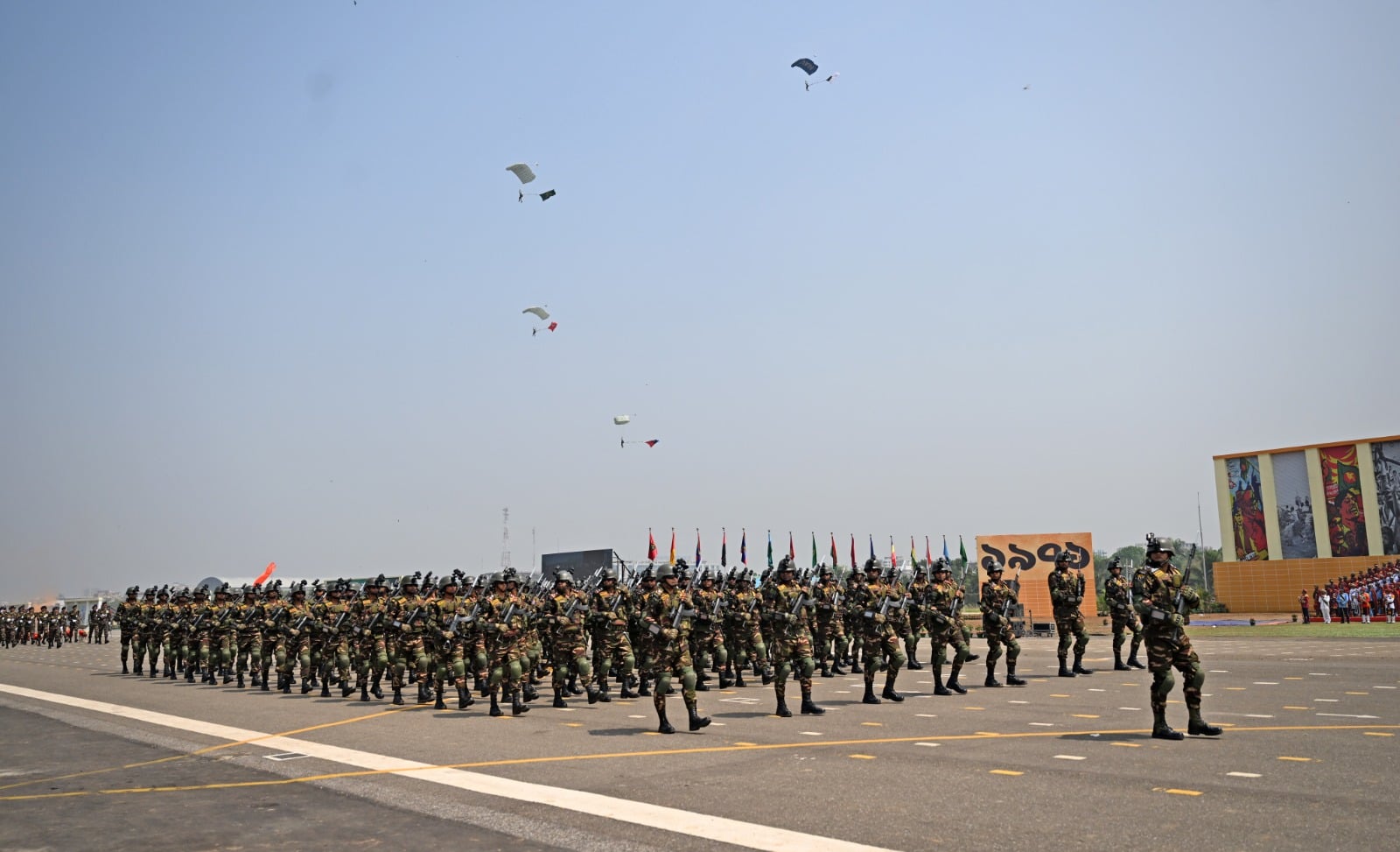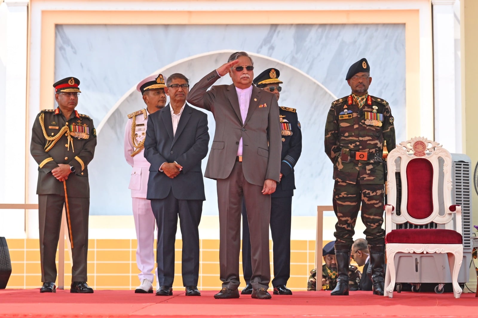 বৃহস্পতিবার (২৬ মার্চ) সকাল ১০টা ৫ মিনিটে আয়োজিত এই অনুষ্ঠানে প্রধান অতিথি হিসেবে উপস্থিত থেকে কুচকাওয়াজের সালাম গ্রহণ করেন রাষ্ট্রপতি মো. সাহাবুদ্দিন এবং প্রধানমন্ত্রী তারেক রহমান।