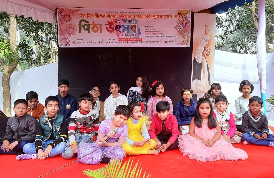 আইলা প্রজ্জ্বলন করে বর্ণিল পিঠা উৎসবের উদ্বোধন করেন বগুডা-৬ আসনের সংসদ সদস্য ও জেলা আওয়ামী লীগের সাধারণ সম্পাদক রাগেবুল আহসান রিপু। এসময় নৃত্য ছন্দম আর্টস একাডেমির শিল্পীরা আগুনের পরশমণি ছোঁয়াও প্রাণে গানের সঙ্গে নৃত্য পরিবেশন করে। এছাড়া কলেজ থিয়েটার পরিবেশন করে বাংলাদেশ গ্রাম থিয়েটারের দলীয় সংগীত। অনুষ্ঠানে সভাপতিত্ব করেন বগুড়া থিয়েটারের সিনিয়র সহ-সভাপতি প্রদীপ ভট্টাচার্য্য শংকর।