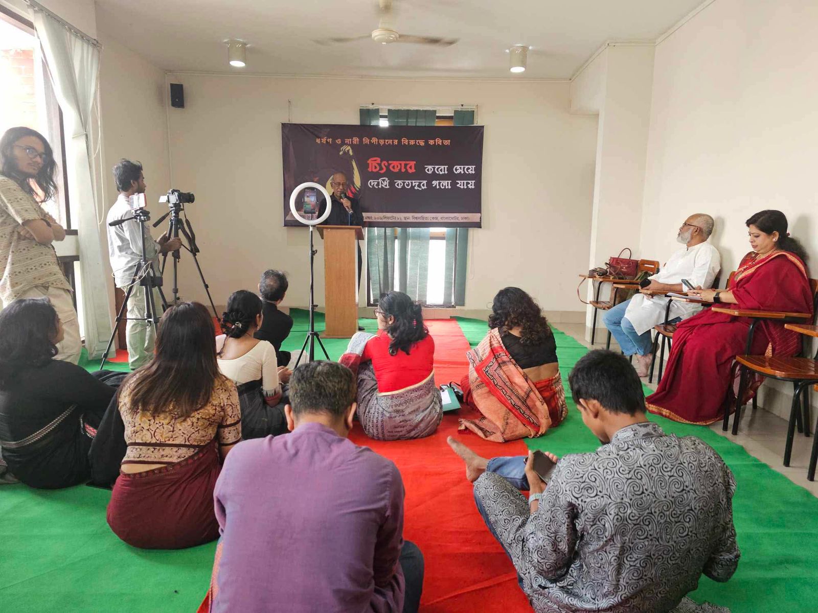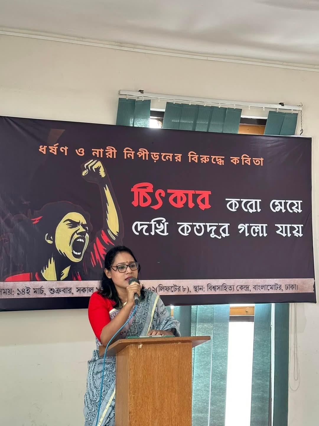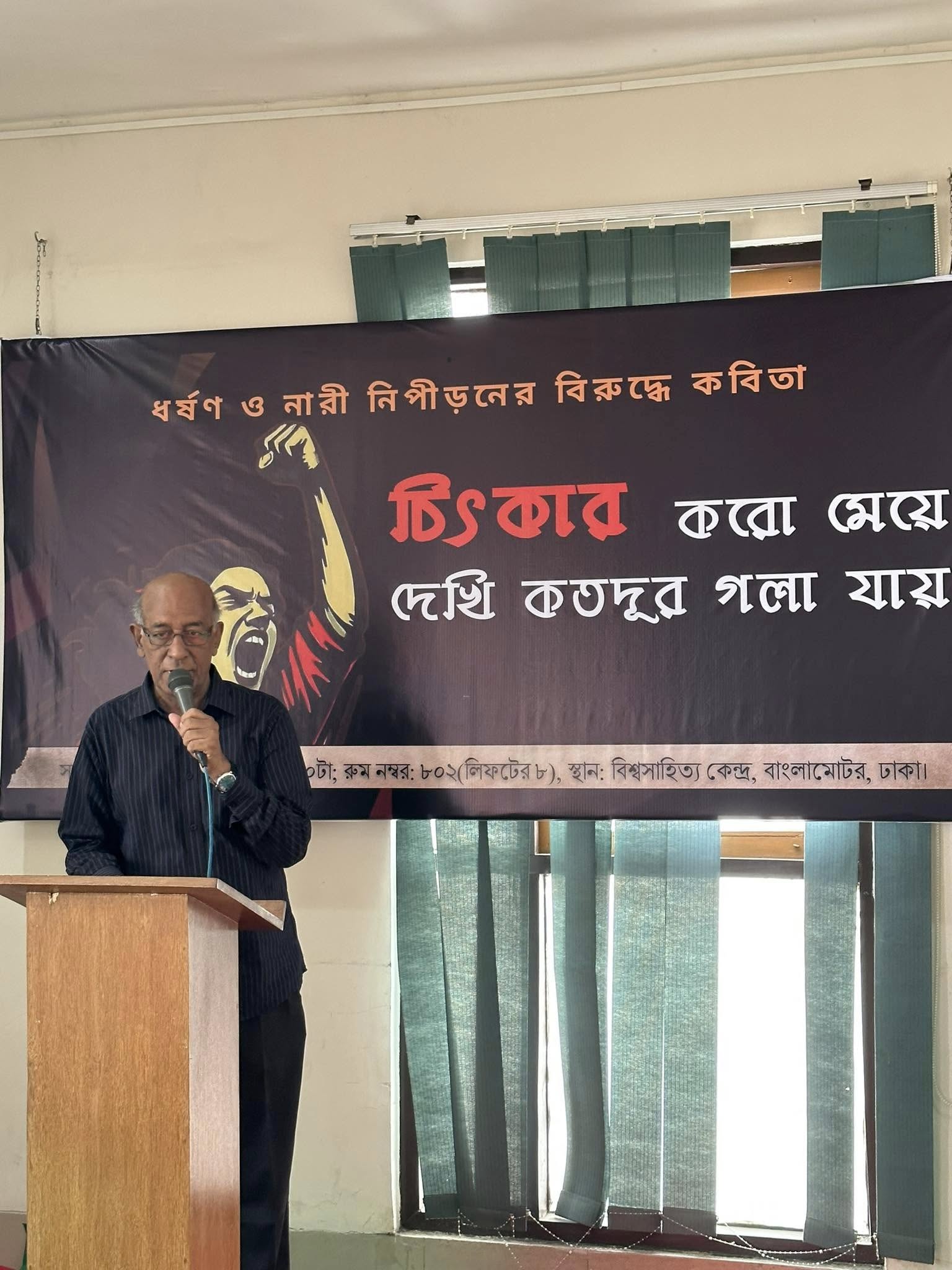 ‘চিৎকার করো মেয়ে, দেখি কতদূর গলা যায়’ স্লোগানে বিশ্বসাহিত্য কেন্দ্র মিলনায়তনে অনুষ্ঠিত হয়েছে ধর্ষণ ও নারী নিপীড়নের বিরুদ্ধে কবিতা আবৃত্তির আয়োজন।
