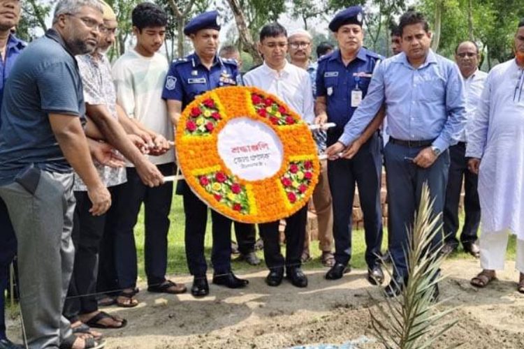 রাজধানীর উত্তরায় বিমান বিধ্বস্তের ঘটনায় নিহত মাইলস্টোন স্কুল অ্যান্ড কলেজের শিক্ষিকা মাহরীন চৌধুরীর সমাধিতে পুষ্পস্তবক অর্পণ করে শ্রদ্ধাজ্ঞাপন করেন নীলফামারী জেলার পুলিশ সুপার এ এফ এম তারিক হোসেন খান।