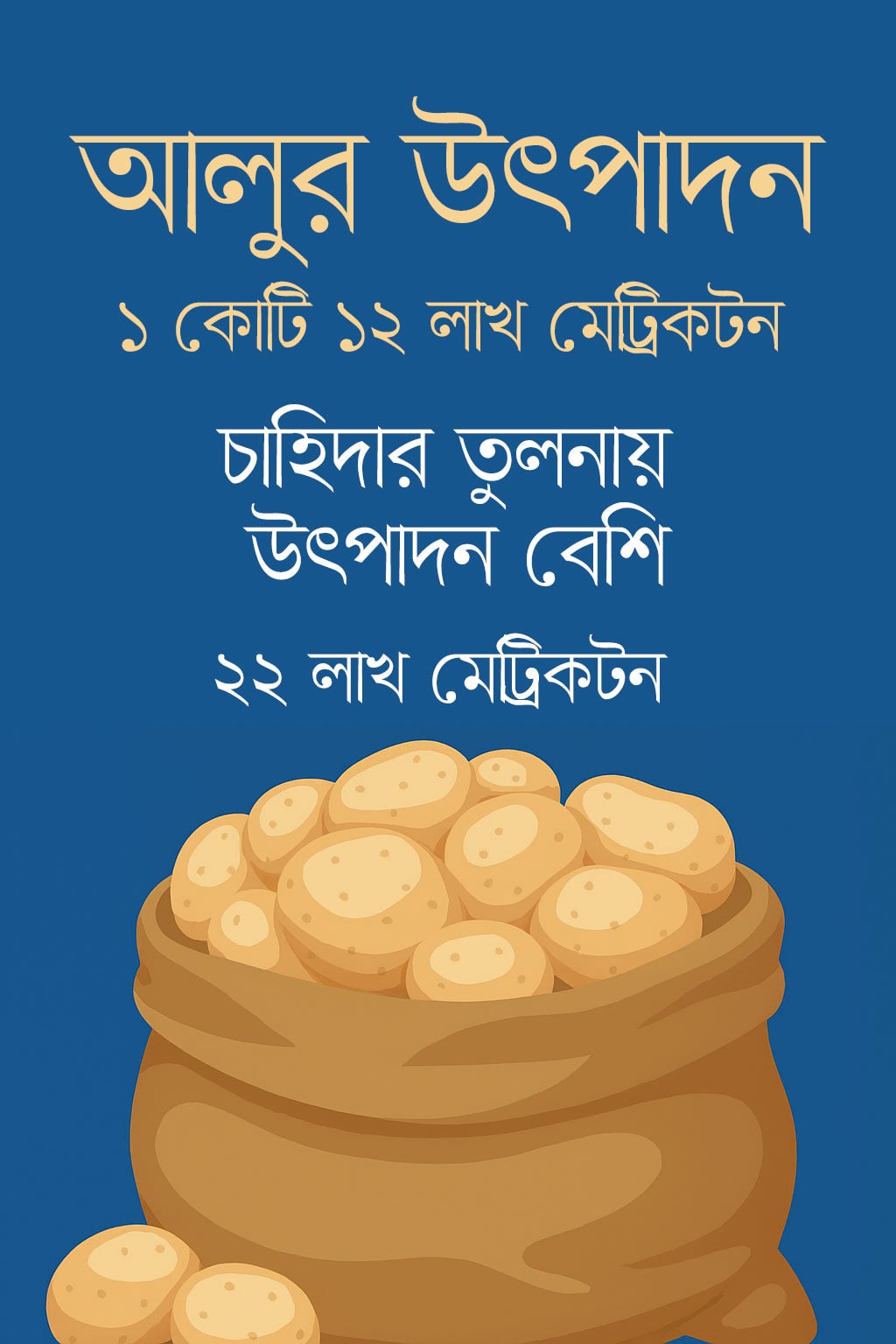 বাংলাদেশ পরিসংখ্যান ব্যুরোর বরাতে তারা বলেন, এ বছর রেকর্ড পরিমাণ প্রায় ১ কোটি ১২ লাখ মেট্রিক টন আলু উৎপাদিত হয়েছে; যা চাহিদার তুলনায় প্রায় ২২ লাখ মেট্রিক টন বেশি। ২০২৫ সালে আলু উৎপাদন খরচ কেজিপ্রতি স্থানভেদে ১৪ থেকে ১৭ টাকা। হিমাগারে সংরক্ষণ খরচ, পরিবহণ, বস্তা, লেবার ও অন্যান্য খরচসহ কেজিপ্রতি আলুর হিমাগার গেটে খরচ দাঁড়িয়েছে ২০-২৫ টাকা। বিপরীতে আলু চাষি কৃষকরা হিমাগার গেটে ৮ থেকে ১৬ টাকা কেজি মূল্যে আলু বিক্রয় করতে বাধ্য হচ্ছেন। যা তাদের উৎপাদন খরচের চেয়েও অনেক কম। এর ফলে আলু চাষিরা ক্ষতিগ্রস্ত হচ্ছেন।