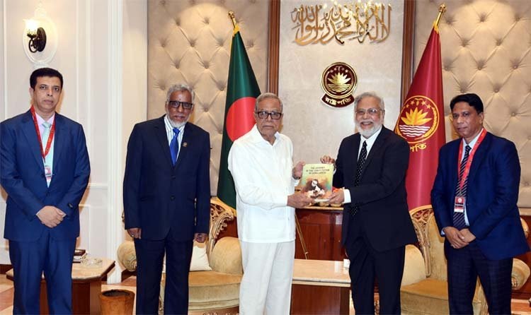 সৌজন্য সাক্ষাৎকালে কমিশন কর্তৃক প্রকাশিত ‘অভিঘাত প্রক্রিয়ায় বাংলাদেশ সংবিধান’ এবং ‘জার্নি অব দ্যা কনস্টিটিউশন অব বাংলাদেশ’ শীর্ষক দুটি গ্রন্থ রাষ্ট্রপতিকে উপহার দেয়া হয়।
