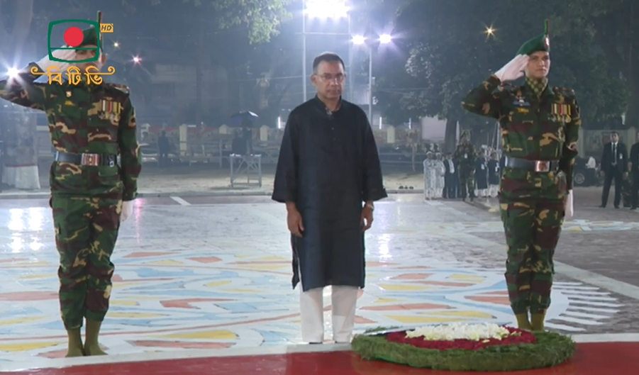 অমর একুশের প্রথম প্রহরে ভাষা শহীদদের প্রতি শ্রদ্ধা নিবেদন করেছেন প্রধানমন্ত্রী তারেক রহমান। শুক্রবার দিবাগত রাত ১২টা ০১ মিনিটে প্রধানমন্ত্রী কেন্দ্রীয় শহীদ মিনারে ভাষা সংগ্রামীদের প্রতি শ্রদ্ধা নিবেদন করেন। পরে শহীদদের স্মরণে তিনি দোয়া মোনাজাতে অংশগ্রহণ করেন।