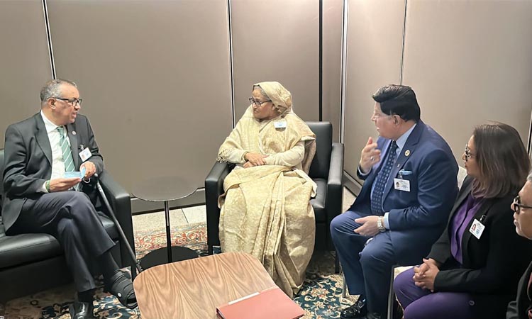 প্রধানমন্ত্রী শেখ হাসিনার সঙ্গে সৌজন্য সাক্ষাৎ করেছেন বিশ্ব স্বাস্থ্য সংস্থার ডিরেক্টর জেনারেল টেড্রস অ্যাধানম গ্যাব্রিয়াস। সোমবার ১৮ সেপ্টেম্বর নিউইয়র্কে জাতিসংঘ সদর দপ্তরের দ্বিপাক্ষিক বৈঠক কক্ষে এ সৌজন্য সাক্ষাৎ অনুষ্ঠিত হয়।