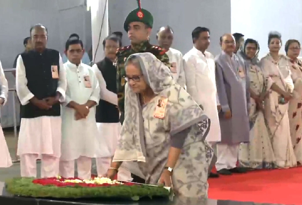 শুক্রবার ৭ জুন সকাল ৭টা ২ মিনিটে রাজধানীর ধানমন্ডিতে বঙ্গবন্ধুর প্রতিকৃতিতে পুষ্পস্তবক অর্পণ করেন তিনি। এসময় শ্রদ্ধা জানিয়ে কিছুক্ষণ নীরবে দাঁড়িয়ে থাকেন প্রধানমন্ত্রী।