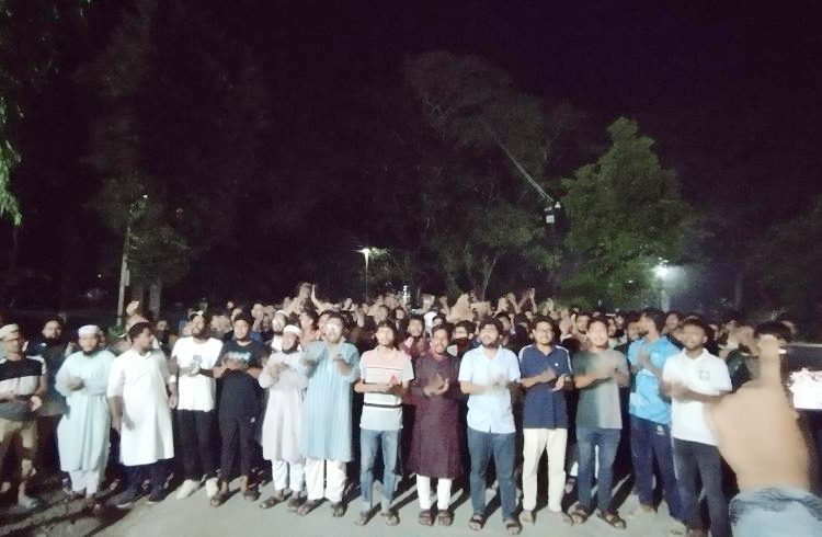 শুক্রবার (১১ জুলাই) সন্ধ্যা সাড়ে ৭ টার দিকে বিশ্ববিদ্যালয়ের জিয়ামোড় থেকে একটি বিক্ষোভ মিছিল বের করে শিক্ষার্থীরা। মিছিলটি ক্যাম্পাসের বিভিন্ন সড়ক প্রদক্ষিণ করে ডায়না চত্বরে গিয়ে সংক্ষিপ্ত সমাবেশে মিলিত হয়।