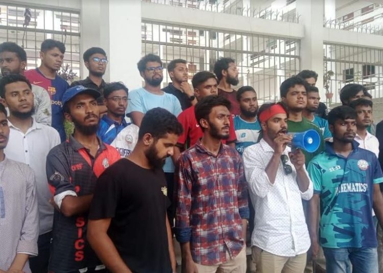 ইএসটি বিভাগের হাবিব আহমেদ শান, আমারা আগামীকাল সকাল এগারোটায় ‘মার্চ টু প্রশাসনিক ভবন’ ও প্রশাসনিক ভবনের সামনে অবস্থান কর্মসূচি পালন করব। আপনাদের সকলকে আমরা অনুরোধ করবো আমাদের আগামী দিনের কর্মসূচি সফল করতে এগিয়ে আসুন। এই স্বৈরাচার ভিসি ও তার দালালদের পদত্যাগ এর দাবিতে আপনারা সকলে এগিয়ে আসুন।