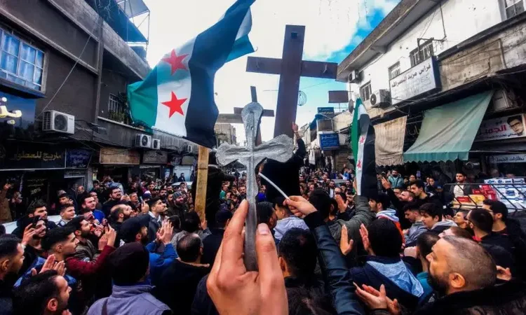 আজ (২৫ ডিসেম্বর) বুধবার বিবিসি বাংলার একটি প্রতিবেদনে বলা হয়, মঙ্গলবার রাজধানী দামেস্কের একাংশসহ বিভিন্ন এলাকায় আগের চেয়েও অনেক বেশী বিক্ষোভকারী রাস্তায় নেমে আসে। “সিরিয়া এখন মুক্ত, নন-সিরিয়ানদের চলে যাওয়া উচিত”, “আমরা আমাদের ক্রসের জন্য জীবন দেবো” এই ধরণের শ্লোগান দিচ্ছিলেন তারা। দামেস্কের কাছে বাব তৌমা এলাকায় বিক্ষোভকারীরা একটি ক্রস আর সিরিয়ার পতাকা বহন করছিলেন।