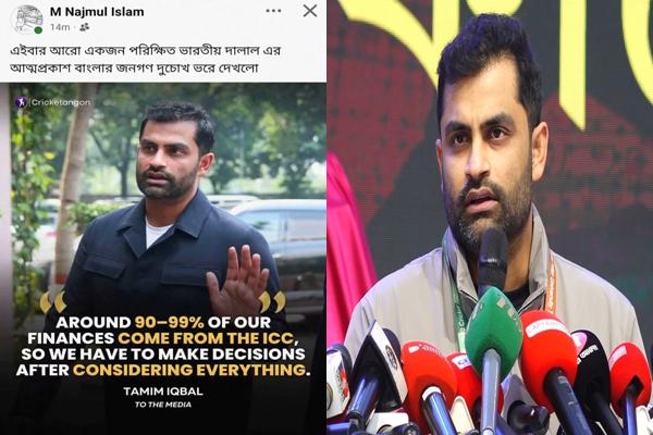 বৃহস্পতিবার সংবাদমাধ্যমের প্রশ্নের জবাবে ভারতে বিশ্বকাপ খেলতে না যাওয়ার সিদ্ধান্তে কিছু মন্তব্য করেন তামিম ইকবাল। সেই মন্তব্যের একটি ফটোকার্ড ফেসবুকে শেয়ার করে বিসিবির অর্থ কমিটির চেয়ারম্যান নাজমুল ইসলাম লেখেন, ‘এইবার আরো একজন পরীক্ষিত ভারতীয় দালাল এর আত্মপ্রকাশ বাংলার জনগণ দুচোখ ভরে দেখলো।’
