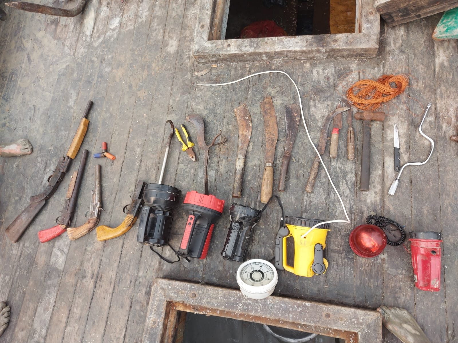আটকের সময় র্যাব সদস্যরা তাদের কাছ থেকে ডাকাতির কাজে ব্যবহৃত অস্ত্র ও বোটটি জব্দ করে। চাঞ্চল্যকর এই ঘটনা নিয়ে আজ দুপুরে চট্টগ্রামের চান্দগাঁওস্থ র্যাব কার্যালয়ে এক সংবাদ সম্মেলনে বিস্তারিত তুলে ধরেন র্যাব-৭ এর অধিনায়ক লেফটেন্যান্ট কর্ণেল মাহবুব আলম।