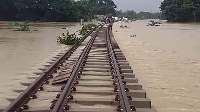 রেলওয়ের কর্মকর্তাদের সঙ্গে কথা বলে জানা গেছে, ফেনী থেকে ফাজিলপুর পর্যন্ত রেললাইন পানিতে ডুবে গেছে। অনেক জায়গায় রেলসেতুর ওপর দিয়ে পানি চলাচল করছে। আর বন্যার পানিতে কুমিল্লায় রেললাইন উপড়ে যাওয়ার খবর পাওয়া গেছে। ফেনী স্টেশনে বন্যার পানি জমে রয়েছে। এছাড়া চট্টগ্রাম–কক্সবাজার রেললাইনে পাহাড় ধস হয়েছে।