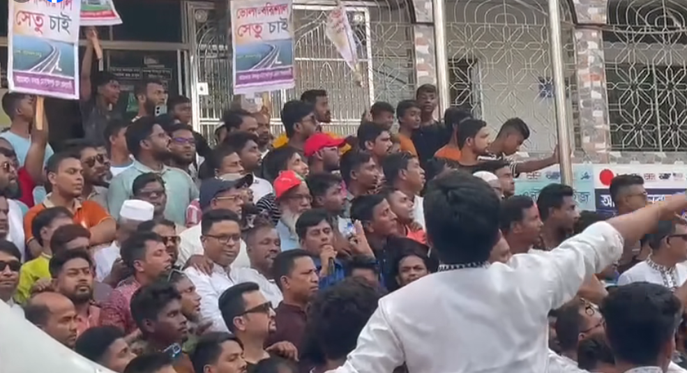 ‘ভোলা-বরিশাল সেতু চাই’ ব্যানারসহ নানা ফেস্টুন নিয়ে জুমার নামাজের পর থেকেই মোহাম্মাদপুরস্থ ভোলাবাসী সমাবেশস্থলে জড়ো হতে থাকেন। এসময় তারা নানা দাবিতে বিক্ষোভ করেন।