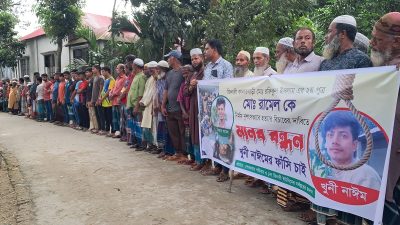 শনিবার (৪ অক্টোবর) বিকেলে জিনারী গ্রামে রামেলের হত্যার প্রতিবাদে বিক্ষোভ মিছিল ও মানববন্ধন করে গ্রামবাসী। নিহতের বাবা-মা, স্বজন, বন্ধুবান্ধব, শিক্ষক থেকে শুরু করে স্থানীয় গণ্যমান্য ব্যক্তিরা একত্রিত হন। সবার কণ্ঠে একটাই দাবি—খুনিদের দ্রুত গ্রেপ্তার ও দৃষ্টান্তমূলক শাস্তি।