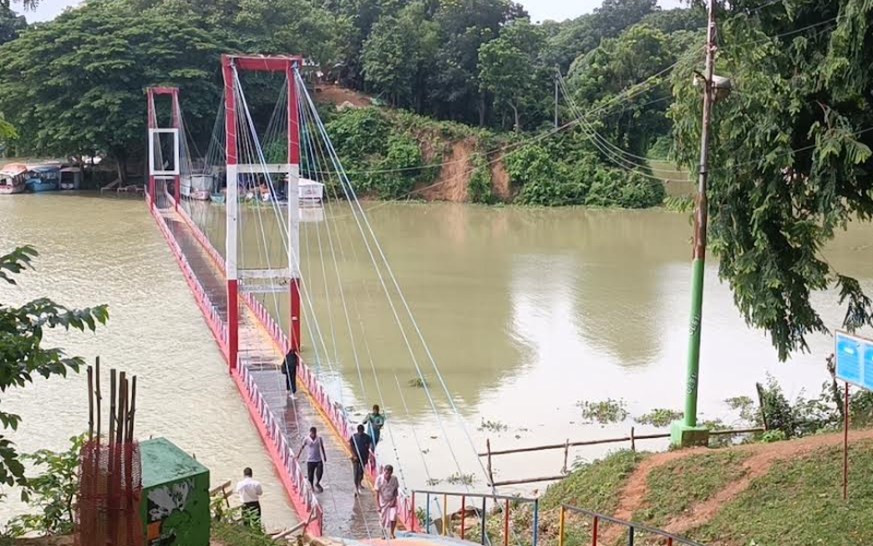 তিনি আরও জানান, ‘এদিকে ঝুলন্ত সেতুর পাটাতনে পানি উঠে যাওয়ায় আমরা কর্তৃপক্ষের সাথে আলোচনা করে আজ সকাল থেকে এখানে পর্যটকদের চলাচলের উপর নিষেধাজ্ঞা জারি করেছি।’