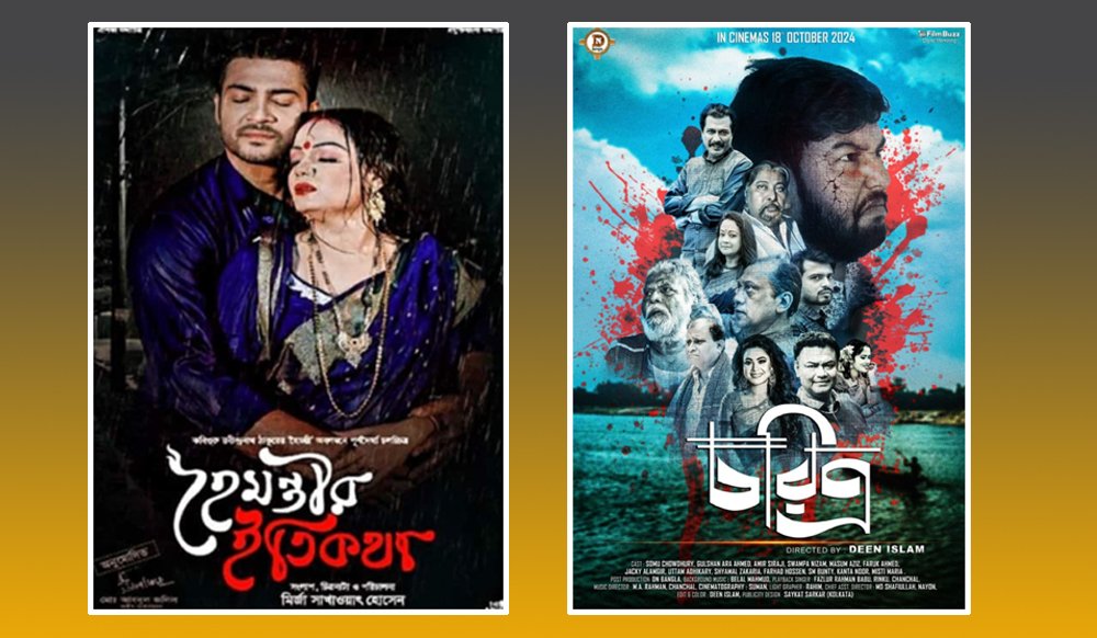 শুক্রবার (১৮ অক্টোবর) দেশের আট প্রেক্ষাগৃহে মুক্তি পেল দুই সিনেমা ‘হৈমন্তীর ইতিকথা’ ও ‘চরিত্র’। কবিগুরু রবীন্দ্রনাথ ঠাকুরের সাহিত্য অবলম্বনে মির্জা সাখাওয়াৎ হোসেন পরিচালনা করেন ‘হৈমন্তীর ইতিকথা’। অন্যটি দ্বীন ইসলাম পরিচালিত সিনেমা ‘চরিত্র’। দুটি সিনেমাই চারটি করে ৮টি প্রেক্ষাগৃহে মুক্তি পেয়েছে।