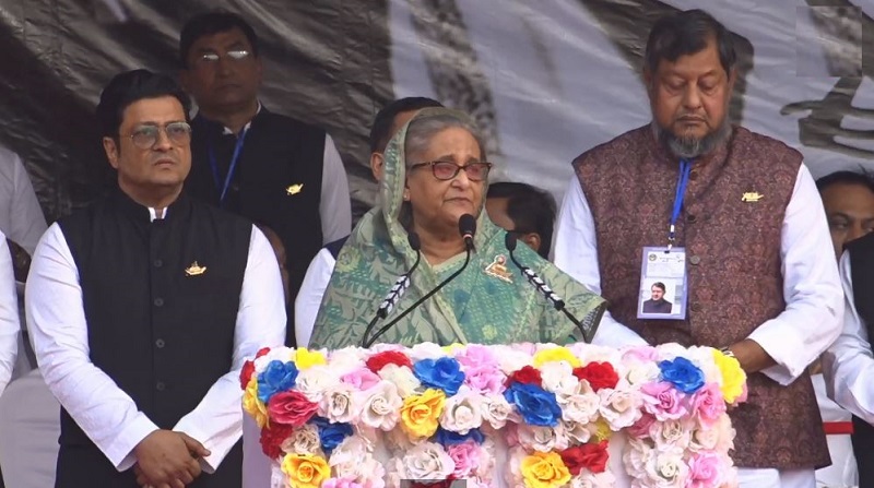 তিনি বলেন: এখন তারা নির্বাচন বানচাল করতে চায়, কেন নির্বাচন বানচাল করবে? আওয়ামী লীগ ক্ষমতায় আছে বলেই আজকে উন্নয়ন হয়েছে। ৭৫’-এর পর যারা ক্ষমতায় এসেছিল, তারা ক্ষমতায় এসেছিল অস্ত্র হাতে নিয়ে ও সংবিধান লঙ্ঘন করে, তারা মানুষের ভাগ্য গড়েনি।
