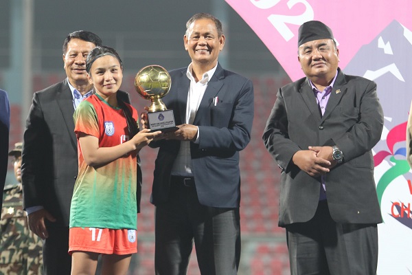 নেপালের দশরথ রঙ্গশালা স্টেডিয়ামে দারুণ ফুটবল খেলেছে বাংলাদেশ। টানা দ্বিতীয়বার মেয়েদের সাফম চ্যাম্পিয়ন হওয়ার গৌরব অর্জন করেছে সাবিনা খাতুনের দল। ফাইনালে ম্যাচসেরা হওয়ার পাশাপাশি আসরসেরা খেলোয়াড় হয়েছেন ফরোয়ার্ড ঋতুপর্ণা চাকমা। চ্যাম্পিয়ন হয়ে দেশের মানুষকে ধন্যবাদ জানিয়েছেন তিনি।