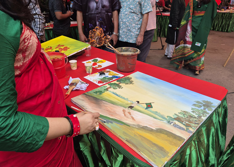 অনুষ্ঠানে দেশের খ্যাতিমান চিত্রশিল্পীদের পাশাপাশি তরুণ এবং শিশু চিত্রশিল্পীরা ক্যানভাসে রং তুলি দিয়ে তাদের মনের মাধুরী মিশিয়ে বাংলাদেশ এবং মুক্তিযুদ্ধ বিষয়ক চিত্র ফুটিয়ে তুলছে।