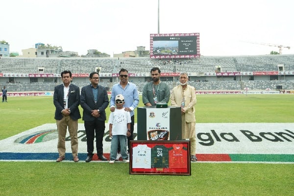 ম্যাচ শুরুর আগে রুবেলের হাতে ক্রেস্ট তুলে দেন অ্যাডহক কমিটির সদস্য রফিকুল ইসলাম বাবু, তিন ফরম্যাটের জার্সির স্মারক তুলে দেন ফাহিম সিনহা। এসময় উপস্থিত ছিলেন অ্যাডহক কমিটির সভাপতি তামিম ইকবাল এবং বিসিবির সিইও নিজামউদ্দিন চৌধুরী সুজন।