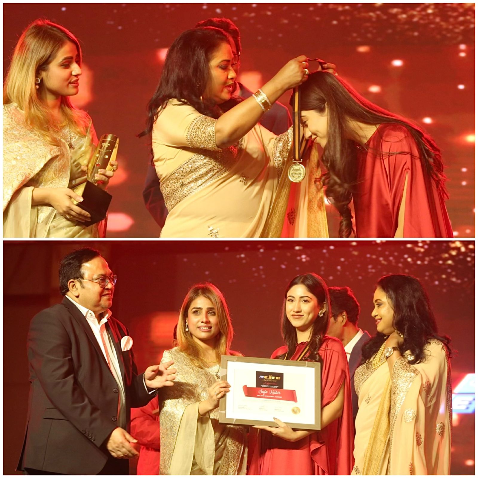 বছরজুড়ে নিজের কাজ নিয়ে সরব ছিলেন সাফা কবির। বিশেষ করে ২০২৪ জুড়ে নানামাত্রিক এক্সপেরিমেন্টাল কাজ দিয়ে সাফা আলোচনায় ছিলেন। তিনি বেশকিছু নাটকে অভিনয় করেছেন। বছর শেষে সিজেএফবি অ্যাওয়ার্ডে ‘বেস্ট ক্রিটিকস অ্যাক্টর’ হিসেবে সেরা অভিনেত্রীর পুরস্কার জেতেন।