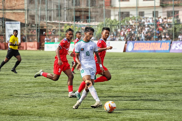 কাঠমান্ডুর আনফা কমপ্লেক্সে স্বাগতিকদের ৪-১ গোলে হারিয়েছে বাংলাদেশ। মিরাজুলের জোড়া গোলের পাশাপাশি অন্য গোল দুটি করেন রাব্বি হোসেন রাহুল ও পিয়াস আহমেদ নোভা। নেপালের হয়ে একমাত্র গোলটি করেন সামির তামাং।