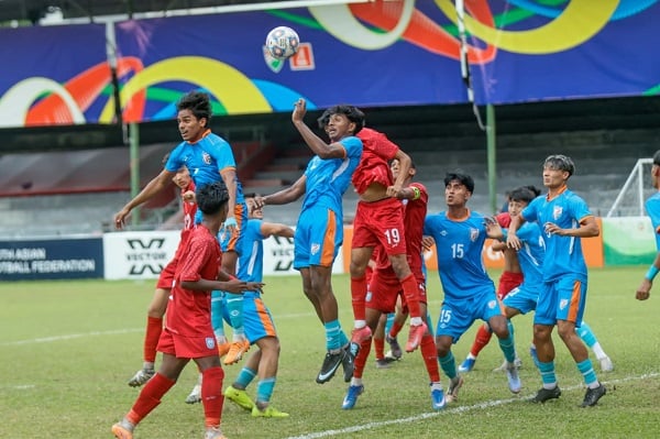 শনিবার ভারতের বিপক্ষে শুরুর দিকেই পিছিয়ে পড়েছিল বাংলাদেশ। তবে রোনান সুলিভান ও আব্দুল রিয়াদ ফাহিমের নৈপুণ্যে ম্যাচে দারুণভাবে প্রত্যাবর্তন করে লাল-সবুজের দল। আক্রমণ-প্রতিআক্রমণে চলতে থাকা ম্যাচের ১৭ মিনিটে লিড পায় ভারত। কর্নার থেকে আসা বল হেডে বাংলাদেশ জালে পাঠান বিশাল। ১-০তে এগিয়ে যায় ভারত।