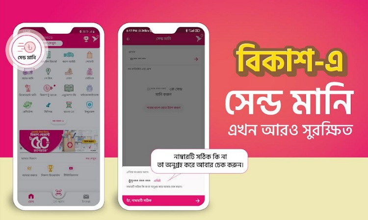 এখন থেকে বিকাশ অ্যাপে সেভ করা নাম্বার ছাড়া অন্য কোনো নাম্বারে ‘সেন্ড মানি’ করার সময় একটি ‘ডিসক্লেইমার প্রম্পট’ বা সতর্কীকরণ বার্তা দেখা যাবে, যেখানে বলা আছে ‘নাম্বারটি সঠিক কি না তা অনুগ্রহ করে আবার চেক করুন’। সেই অনুযায়ী নাম্বারটি নিশ্চিত হয়ে পরবর্তী ধাপে টাকার পরিমাণ উল্লেখ করে সেন্ড মানি করলেই ভুল নাম্বারে টাকা পাঠনোর কোনো বিড়ম্বনা থাকে না।