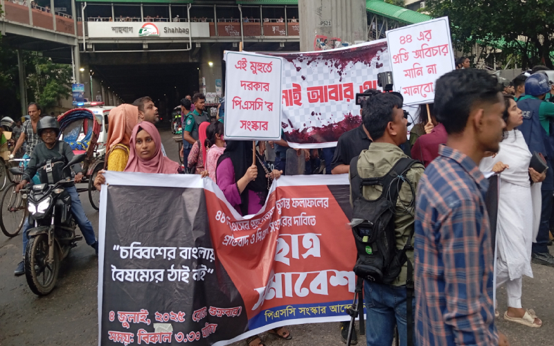 ৪৪তম বিসিএসের চূড়ান্ত ফলাফল পুনর্মূল্যায়নের দাবিতে রাজধানীর শাহবাগ মোড় অবরোধ করেছেন অসন্তুষ্ট চাকরিপ্রার্থীরা।