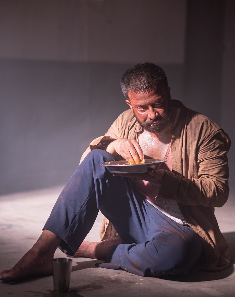 চার দেয়ালের মাঝে বন্দী শাকিব খান। বিমর্ষ চেহারা, ছোট ছোট চুল, গায়ে ময়লা বাদামী রঙের জামা, পরনে নীল প্যান্ট; যেখানে ধুলোবালি লেগে আছে। তার হাত, পা কিংবা চেহারায় ময়লা এবং নির্যাতনের ছাপ! চোখে মুখে রাজ্যের ক্ষুধা! স্টিলের প্লেটে খাবার খাচ্ছেন আর কাঁদছেন!