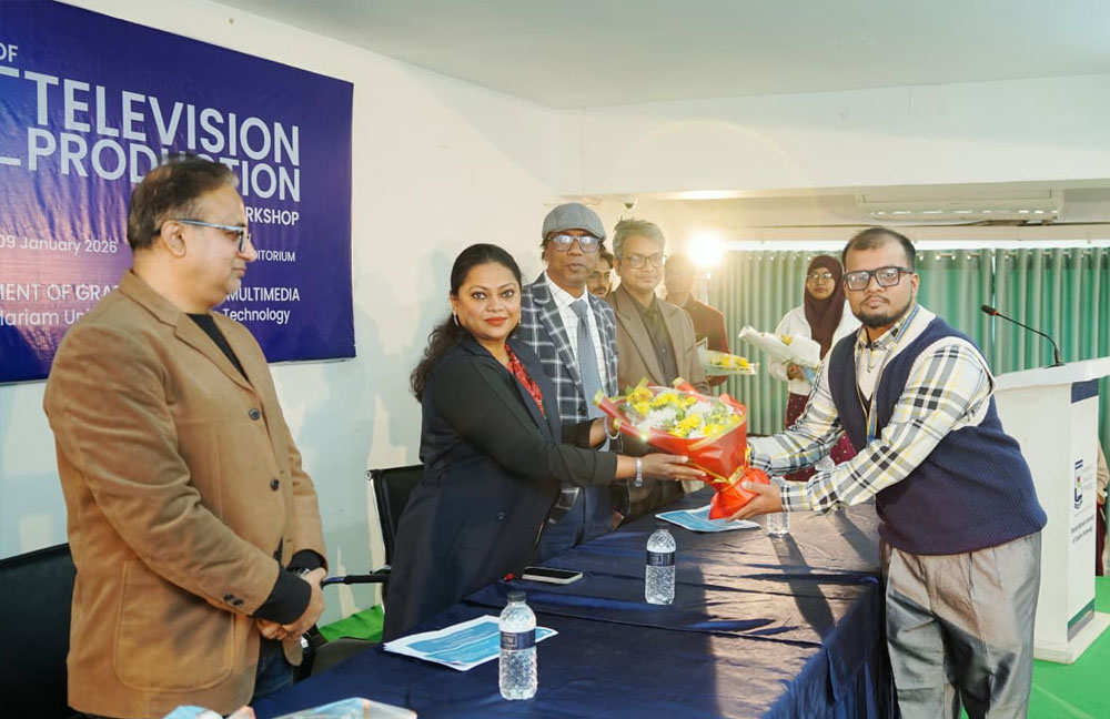 শান্ত-মারিয়াম ইউনিভার্সিটি অব ক্রিয়েটিভ টেকনোলজি’র গ্রাফিক ডিজাইন ও মাল্টিমিডিয়া বিভাগের ৪৬তম আবর্তনের শিক্ষার্থীদের অংশগ্রহণে টিভি অনুষ্ঠান প্রযোজনা কৌশল বিষয়ে দিনব্যাপী একটি প্রশিক্ষণ কর্মশালা অনুষ্ঠিত হয়েছে।