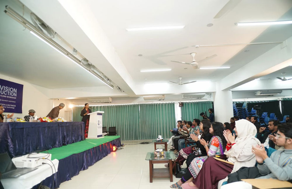 কর্মশালার শুরুতে স্বাগত বক্তব্য দেন গ্রাফিক ডিজাইন ও মাল্টিমিডিয়া বিভাগের বিভাগীয় প্রধান ও সহযোগী অধ্যাপক মো. সাইফুল ইসলাম। তিনি শিক্ষার্থীদের উদ্দেশে বলেন, বর্তমান গণমাধ্যম ও কনটেন্ট ইন্ডাস্ট্রিতে টিকে থাকতে হলে একাডেমিক জ্ঞানের পাশাপাশি বাস্তবমুখী দক্ষতা অর্জনের বিকল্প নেই।