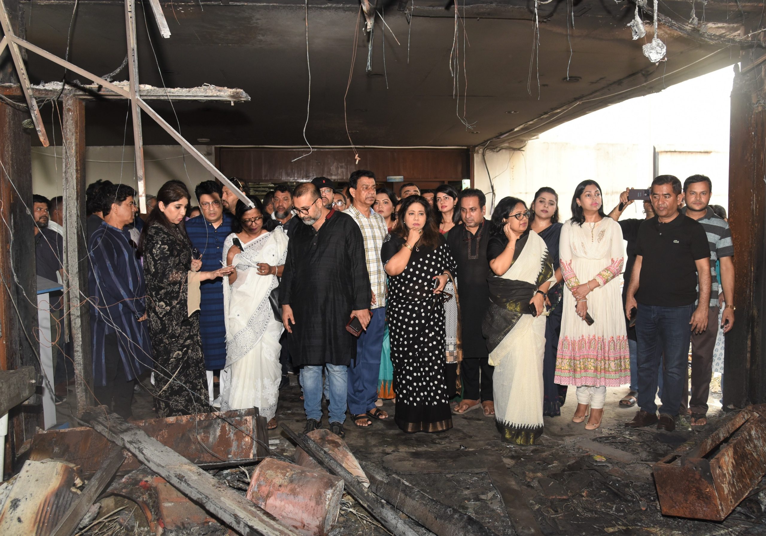 শমী কায়সার বলেন, ‘সকল সংস্কৃতিকর্মীরা আমরা দাঁড়িয়েছি আজ শোকাবহ আগস্টের প্রথম দিনে। আগস্ট মাস আমাদের একটি প্রতিবাদের মাস। যে মাসে বঙ্গবন্ধুকে হত্যার মাধ্যমে স্বাধীনতার ইতিহাসকে হত্যা করা হয়েছে। সেরকম একটি মাসে আমরা আবারো দাঁড়াবো এই বাংলাদেশ টেলিভিশন চত্তরে সেটা আমাদের জীবদ্দশাতেও কখনো ভাবিনি। আজকে আমরা ব্যথিত, ক্ষুব্ধ, মর্মাহত। কারণ যে বাংলাদেশ টেলিভিশন বাঙালির সংস্কৃতির ধারক ও বাহক, বাংলাদেশের ইতিহাসে মুক্তিযুদ্ধের চেতনাকে ধারণ করেছে- সেই বাংলাদেশ টেলিভিশনে এসে এই ধ্বংসযজ্ঞ দেখে মর্মাহত হয়েছি। এখানে আমরা বেড়ে উঠেছি, শিল্পী হিসেবে এই প্রাঙ্গনে বড় হয়েছি। এই ধ্বংসযজ্ঞের সঙ্গে যারা জড়িত আছে তাদের সকলের আমরা বিচার চাই। বাংলাদেশে এরকম নৃশংসতাা, এমন ধ্বংসযজ্ঞ, এতো প্রাণহানী আমরা আর চাই না।’