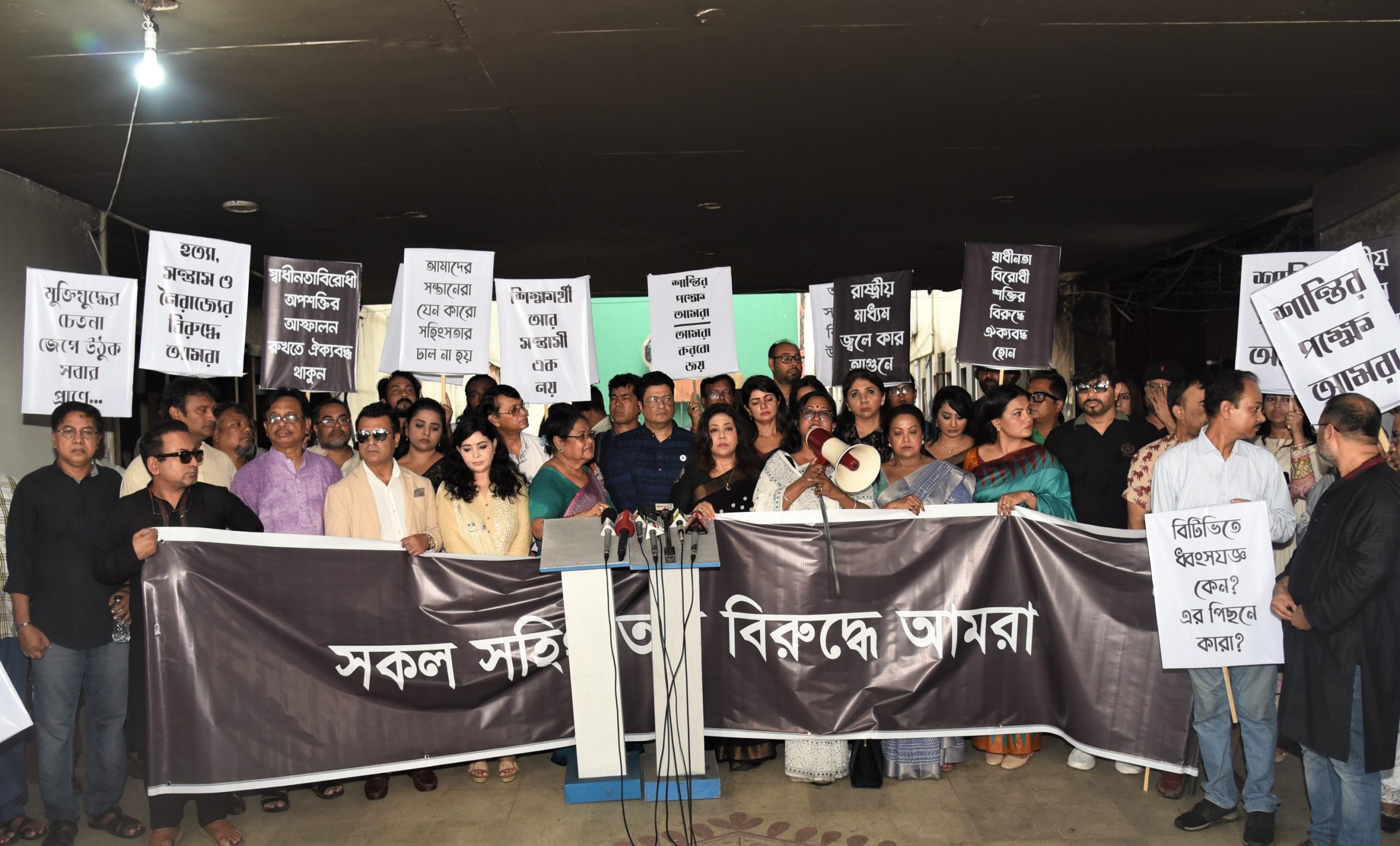 এছাড়াও সহিংসতার বিরুদ্ধে মত প্রকাশ করেন পরিচালক মুশফিকুর রহমান গুলজার, হৃদি হক, সোহানা সাবা, সাজু খাদেম, অরুণা বিশ্বাস, নিপূণসহ উপস্থিত অনেক তারকাই।