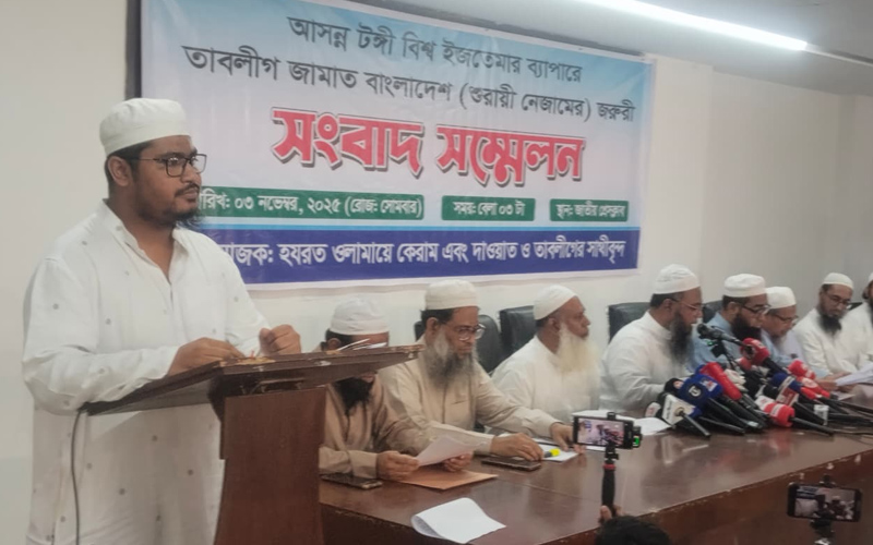 সোমবার (৩ নভেম্বর) বিকেল সাড়ে ৩টায় আসন্ন টঙ্গী বিশ্ব ইজতেমা বিষয়ে তাবলীগ জামাত বাংলাদেশ (শুরায়ি নেজাম) আয়োজিত এক জরুরি সংবাদ সম্মেলনে লিখিত বক্তব্যে এই সিদ্ধান্তের কথা জানান উত্তরা মাদ্রাসাতুল মানহালের মুহতামিম মুফতি কেফায়েত উল্লাহ আজহারী।