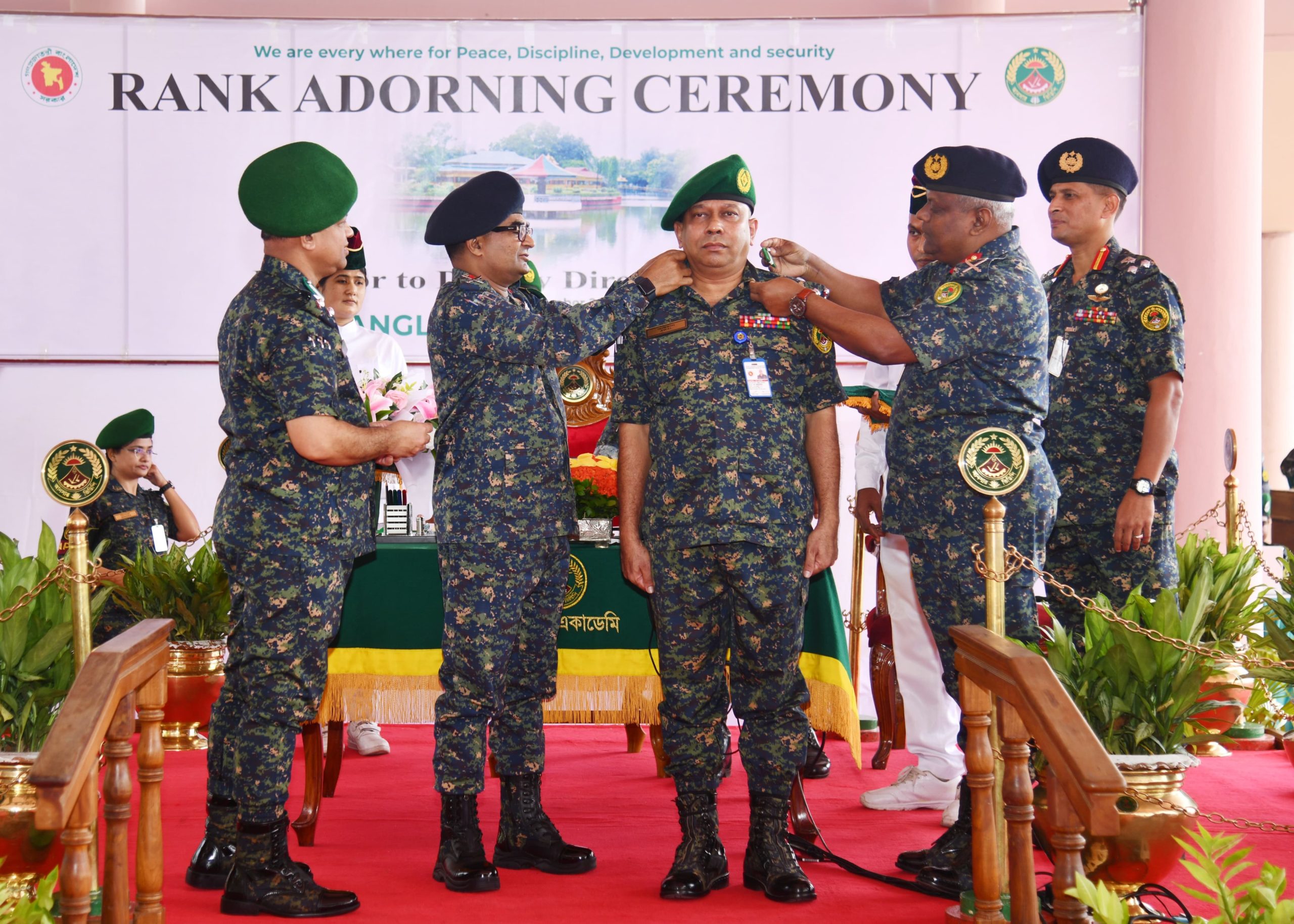 বাংলাদেশ আনসার ও গ্রাম প্রতিরক্ষা বাহিনীর সদ্য পদোন্নতিপ্রাপ্ত ছয়জন কর্মকর্তাকে উপ-মহাপরিচালকের র্যাংক ব্যাজ পরিয়ে দিয়েছেন বাহিনীর মহাপরিচালক মেজর জেনারেল এ কে এম আমিনুল হক।