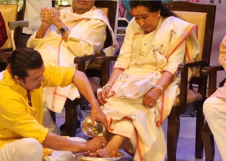 যে মুহূর্তটি ইতোমধ্যে ছড়িয়ে গেছে নেট দুনিয়ায়। এক ভিডিওতে দেখা যায়, মঞ্চে আশা ভোঁসলের পায়ের কাছে বসে আছেন সোনু। প্রথমেই বর্ষীয়ান গায়িকার পায়ে চুম্বন করেন। এর পরে তার দু’পা গোলাপ জল দিয়ে নিজে হাতে ধুয়ে দেন গায়ক। সোনুর ভক্তিপ্রকাশের এই ধরন দেখে মুগ্ধ নেটিজেনরা শেয়ার করছেন ভিডিও ক্লিপটি!