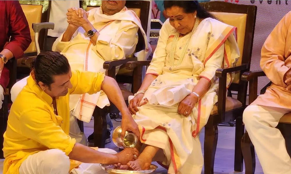 বলিউডের তুমুল জনপ্রিয় গায়ক হলেও নিজেকে আশা ভোঁসলের গুণমুদ্ধ ভক্ত বলে দাবি করেন সোনু। আর তাই প্রিয় শিল্পীকে কাছে পেয়ে অভিনব কায়দায় করলেন শ্রদ্ধাজ্ঞাপন! মঞ্চে আশা ভোঁসলের পা গোলাপ জলে ধুয়ে দিলেন এই গায়ক।