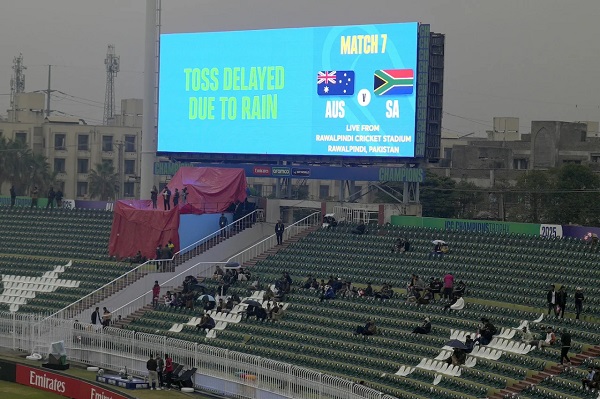 স্টিভেন স্মিথ ও টেম্বা বাভুমাদের ম্যাচের টস হওয়ার কথা ছিল আড়াইটায় এবং খেলা শুরু হওয়ার কথা তিনটায়। সারাদিন বৃষ্টি হওয়ায় রাওয়ালপিন্ডিতে টস পর্যন্ত মাঠে গড়ায়নি। বুধবার ইংল্যান্ড ও আফগানিস্তানের ম্যাচে যারা হারবে এবারের চ্যাম্পিয়ন্স ট্রফির আসর শেষ তাদের। জয়ীদের নানা ধরনের সমীকরণ মেলাতে হবে প্রোটিয়া ও অজিদের বিপক্ষে।