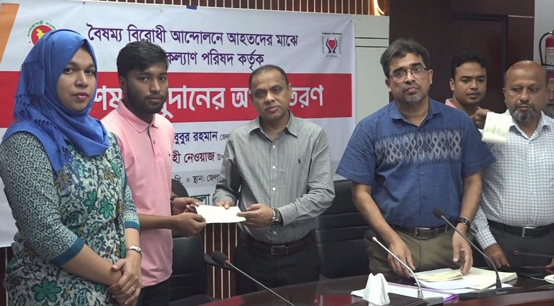 নোয়াখালীতে বৈষম্যবিরোধী আন্দোলনে আহতদের মাঝে জাতীয় সমাজকল্যাণ পরিষদের বিশেষ অনুদানের অর্থ বিতরণ বিতরণ করা হয়েছে।
