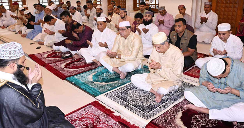 বঙ্গভবন জামে মসজিদের পেশ ইমাম মাওলানা সাইফুল কবির মোনাজাত পরিচালনা করেন।