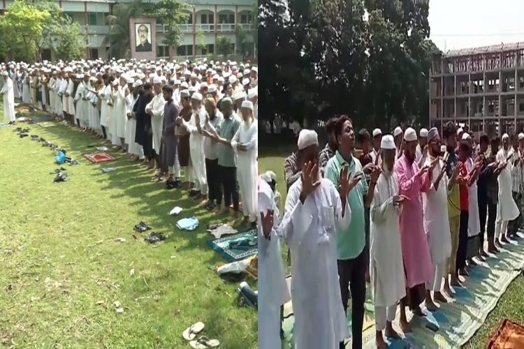 সারাদেশে চলছে তীব্র তাপদাহ। জেলায়-জেলায় জারি করা হয়েছে হিট অ্যালার্ট। বৃষ্টির জন্য হাহাকার পড়েছে দেশ জুড়ে। এর মধ্যেই তাপদাহ থেকে রক্ষা পেতে আল্লাহর কাছে দোয়া করতে দেশের বিভিন্ন জেলায় বিশেষ নামেজ অনুষ্ঠিত হয়েছে। কিশোরগঞ্জ, বরিশাল , রাজশাহী এবং চাঁদপুরে ইসতেসকার নামাজ আদায় করেছেন মুসুল্লিরা।