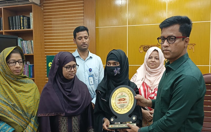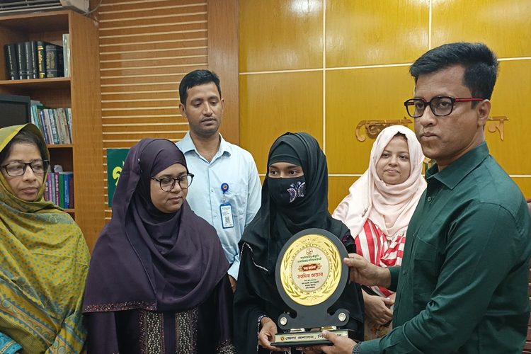 বুধবার ২২ এপ্রিল পিরোজপুর জেলা প্রশাসক আবু সাইদ তার কার্যালয়ে এক অনুষ্ঠানের মাধ্যমে সম্মাননা স্মারক তুলে দেন তাহমিনা আক্তারের হাতে। পাশাপাশি সনদপত্র এবং পড়াশোনা চালিয়ে যাওয়ার জন্য জেলা প্রশাসনের পক্ষ থেকে আর্থিক অনুদানও দেওয়া হয় তাহমিনাকে। এ সময় তাহমিনার পিতা-মাতা উপস্থিত ছিলেন ।