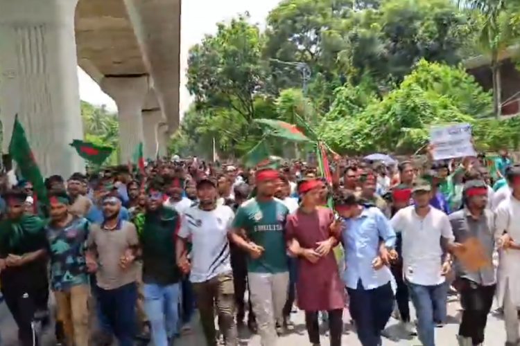 কোটা সংস্কার করে সংসদে আইন পাসের এক দফা দাবিতে আন্দোলনরত শিক্ষার্থীরা বঙ্গভবনে রাষ্ট্রপতি বরাবর স্মারকলিপি দেওয়ার উদ্দেশে গণযাত্রা শুরু করেছে।
